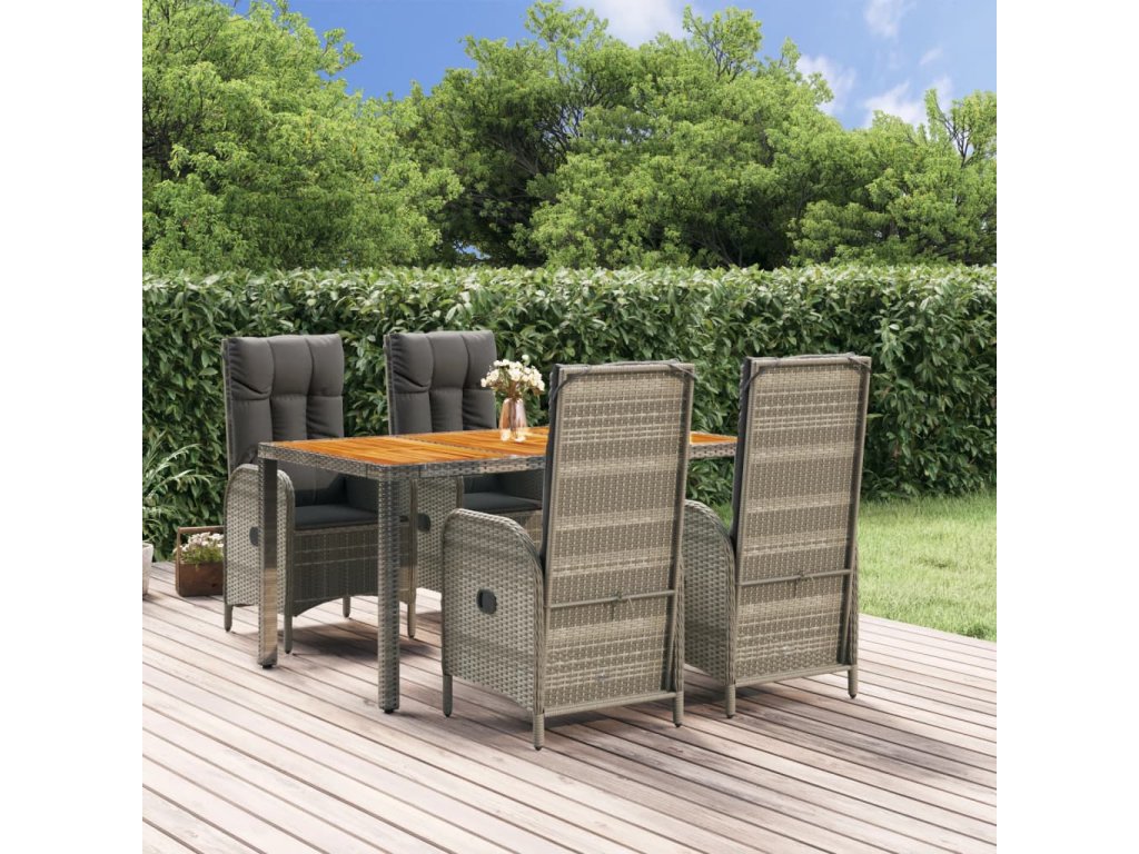 5dílný zahradní jídelní set s poduškami šedý polyratan 3185040