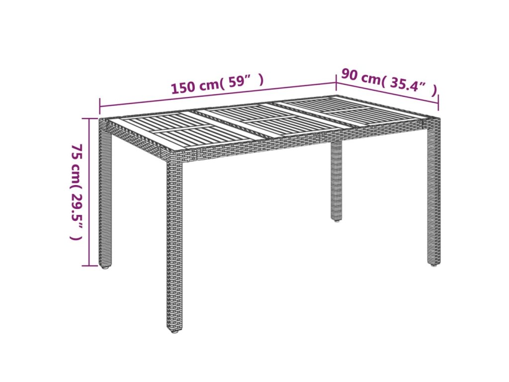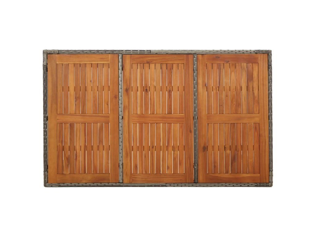 - Materiál: PE ratan, práškově lakovaná ocel, masivní akáciové dřevo s olejovou povrchovou úpravou
