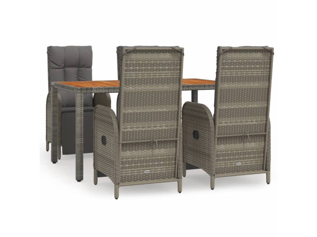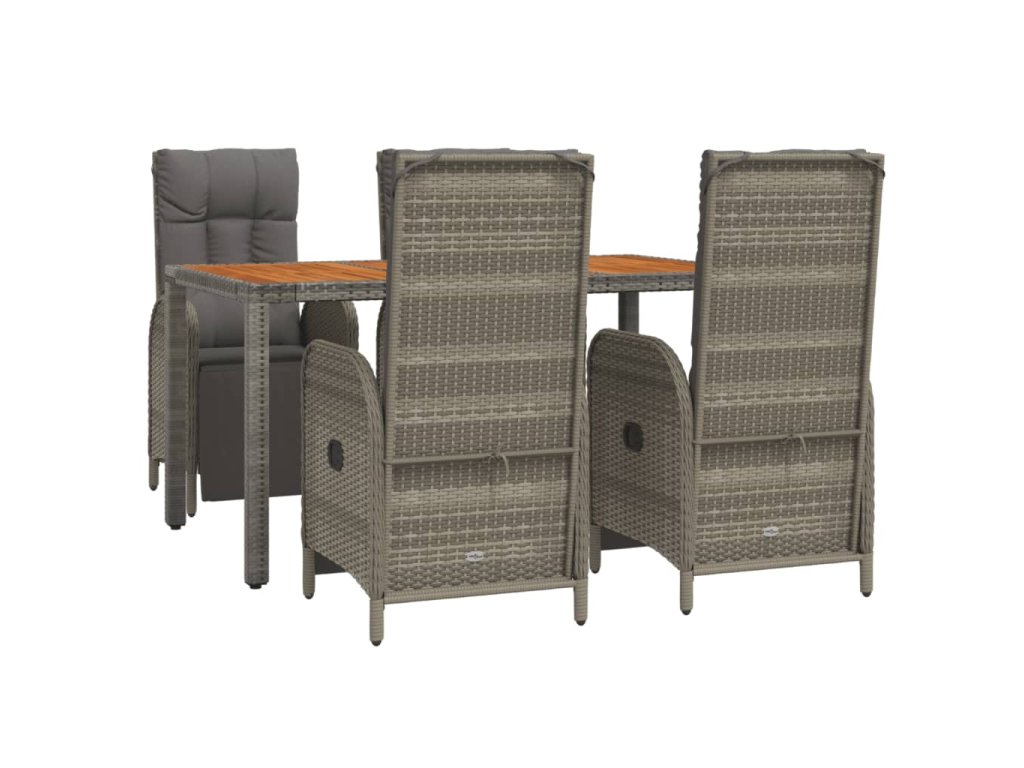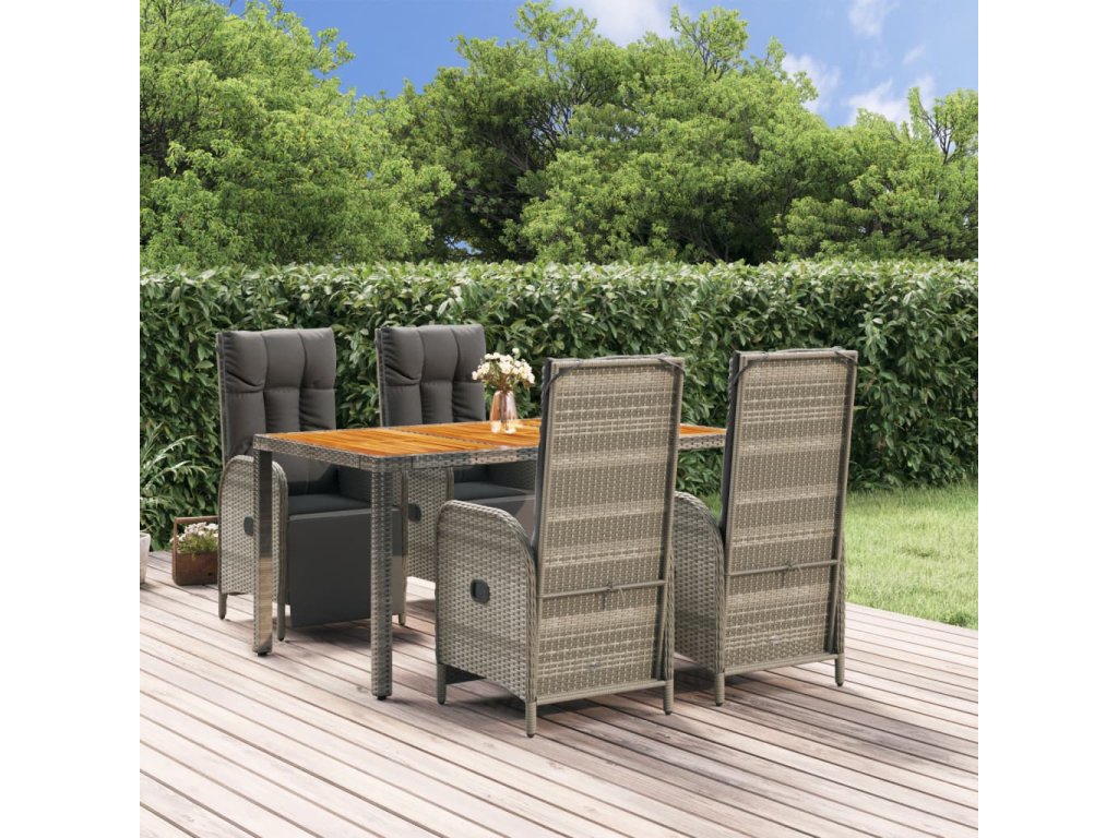 5dílný zahradní jídelní set s poduškami šedý polyratan 3185046