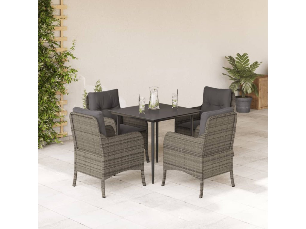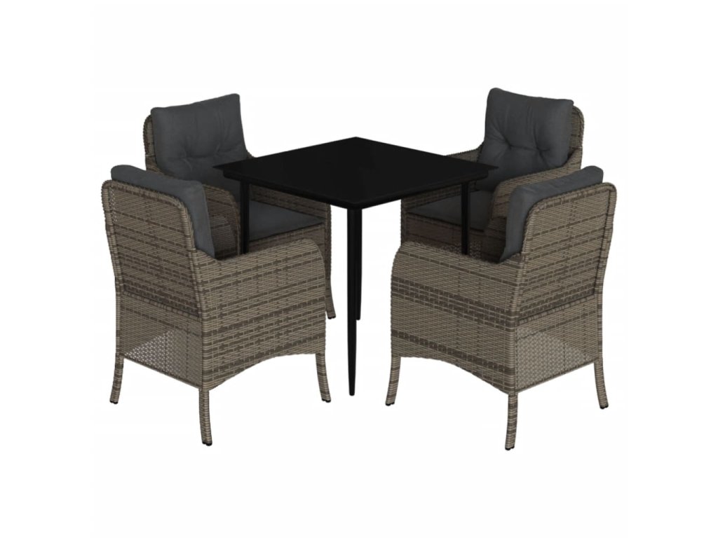 5dílný zahradní jídelní set s poduškami šedý polyratan 3211949