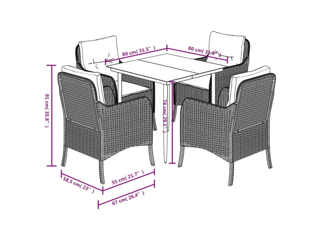 - Rozměry: 80 x 80 x 74 cm (D x Š x V)