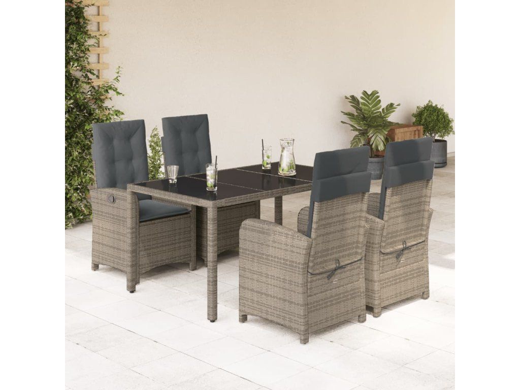 5dílný zahradní jídelní set s poduškami šedý polyratan 3212215