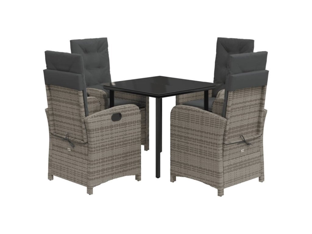 5dílný zahradní jídelní set s poduškami šedý polyratan 3212361