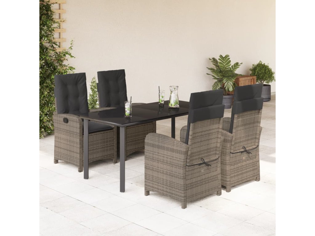 5dílný zahradní jídelní set s poduškami šedý polyratan 3212364
