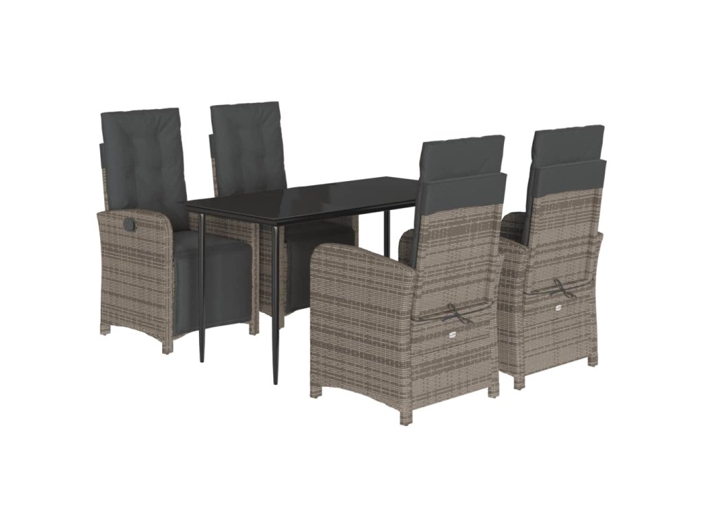 5dílný zahradní jídelní set s poduškami šedý polyratan 3212558