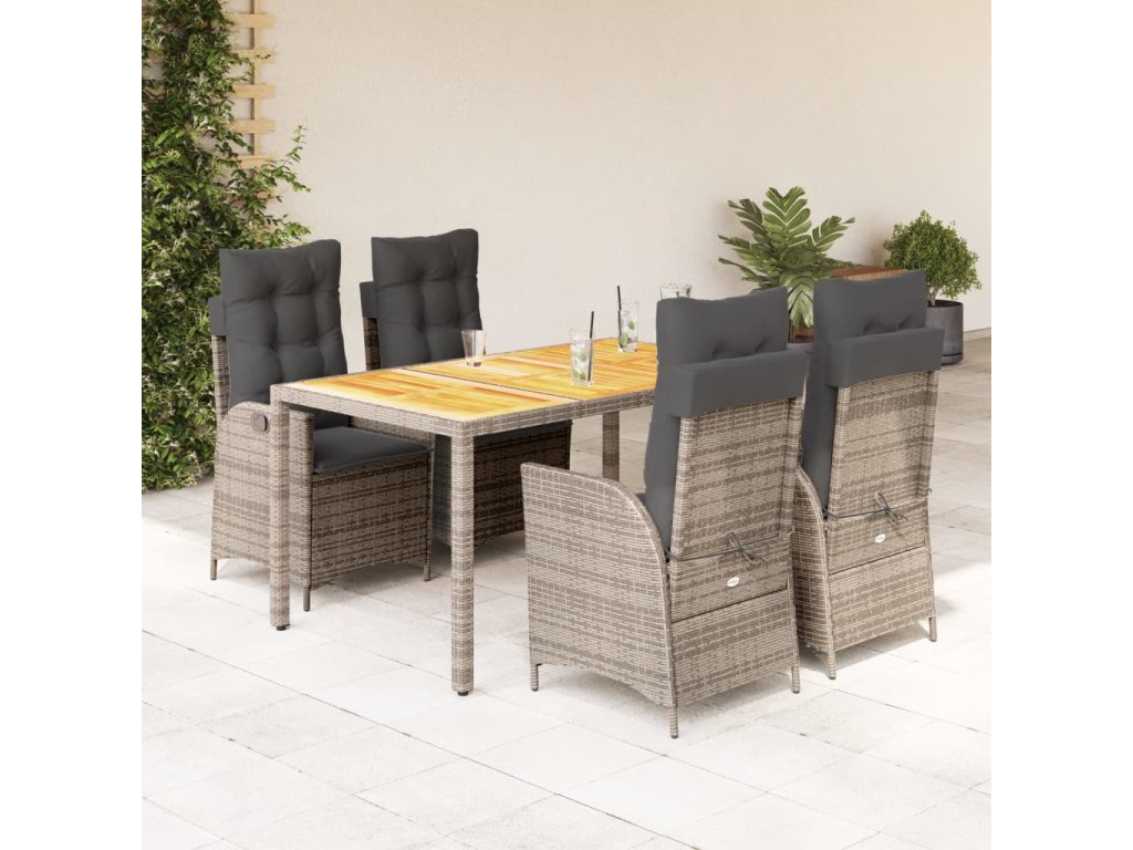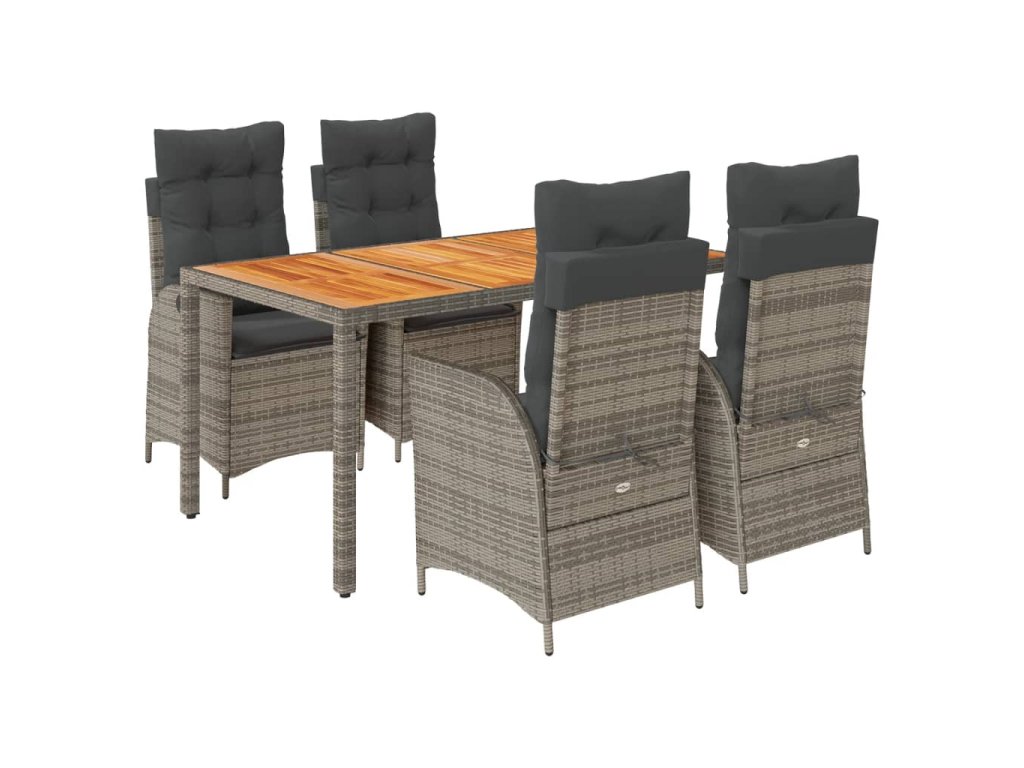 5dílný zahradní jídelní set s poduškami šedý polyratan 3213106