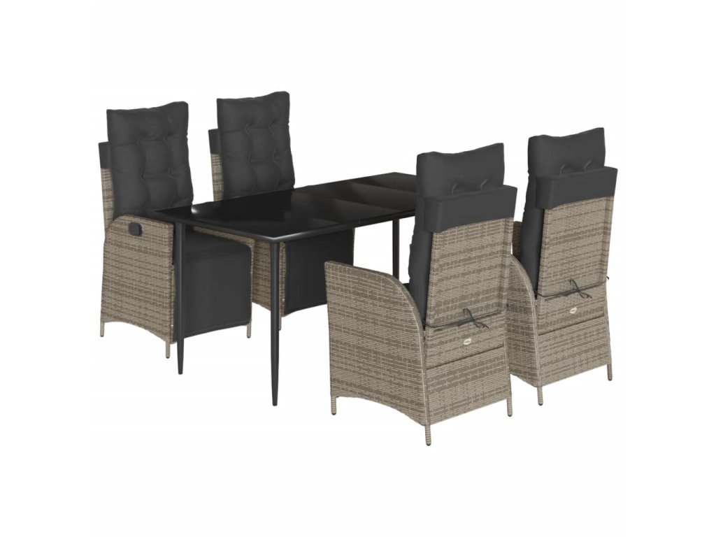 5dílný zahradní jídelní set s poduškami šedý polyratan 3213423