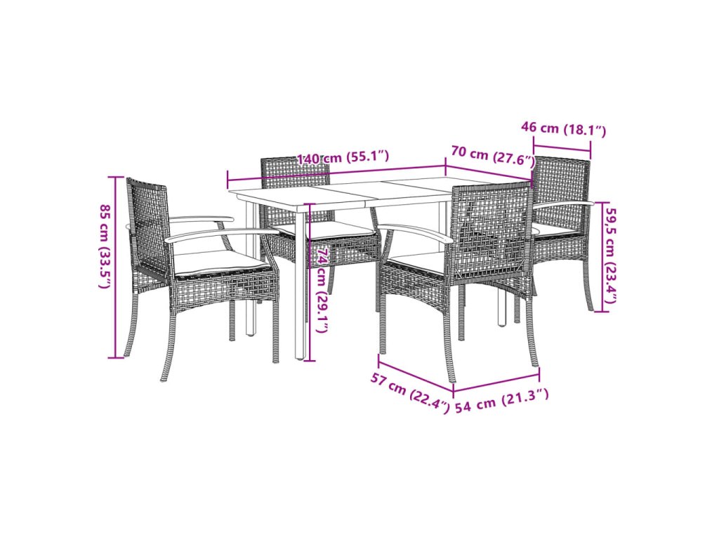 Tento zahradní jídelní set je skvělou volbou pro stolování pod širým nebem nebo jen tak pro odpočívání na zahradě, dvorku či terase.