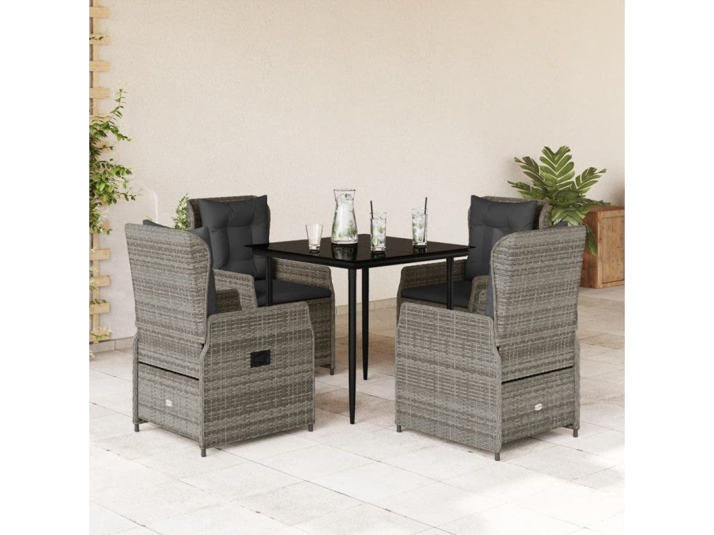 5dílný zahradní jídelní set s poduškami šedý polyratan 3262855
