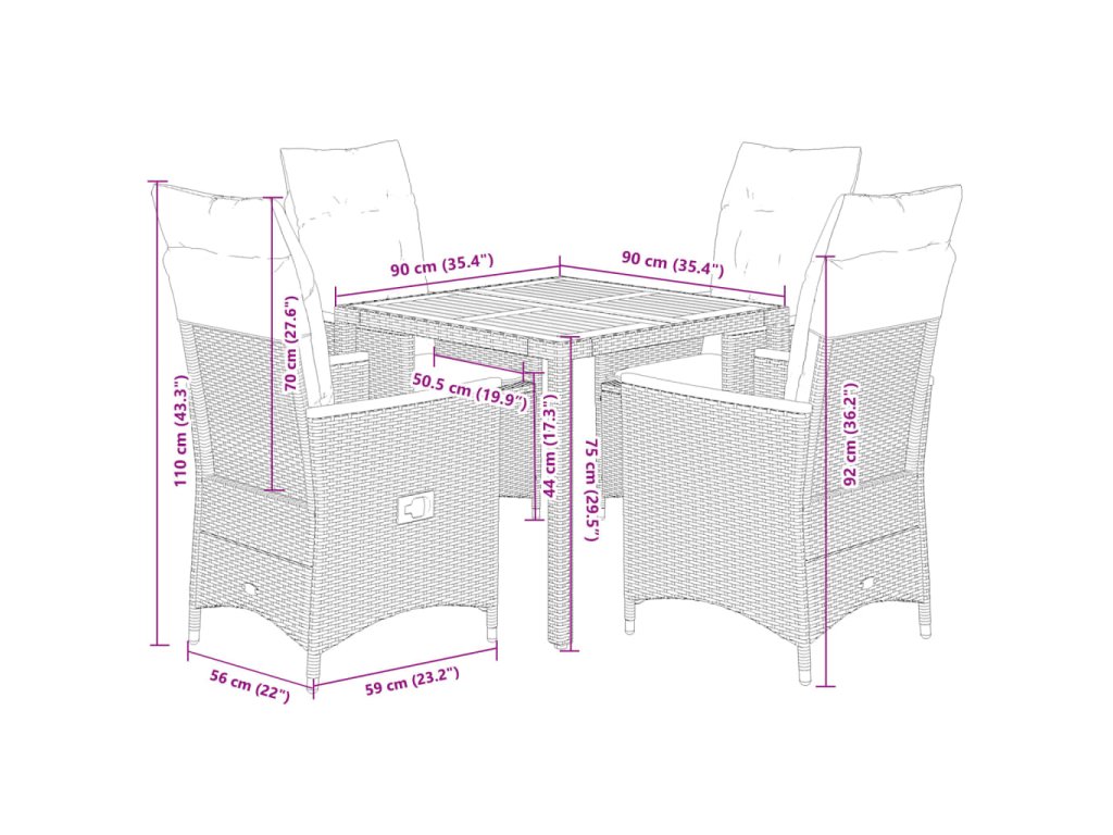 - Materiál: PE ratan, ocel, masivní akáciové dřevo s olejovou povrchovou úpravou