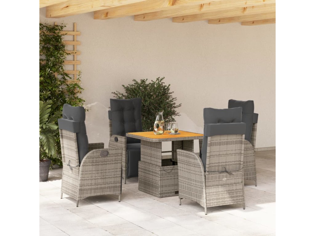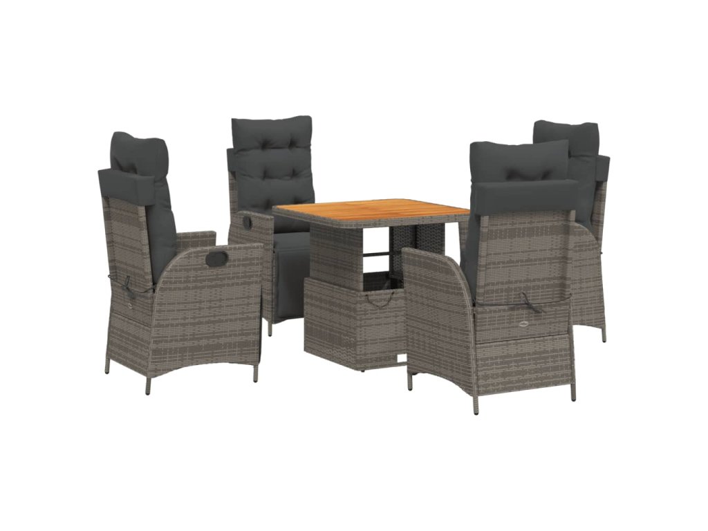 5dílný zahradní jídelní set s poduškami šedý polyratan 3277460