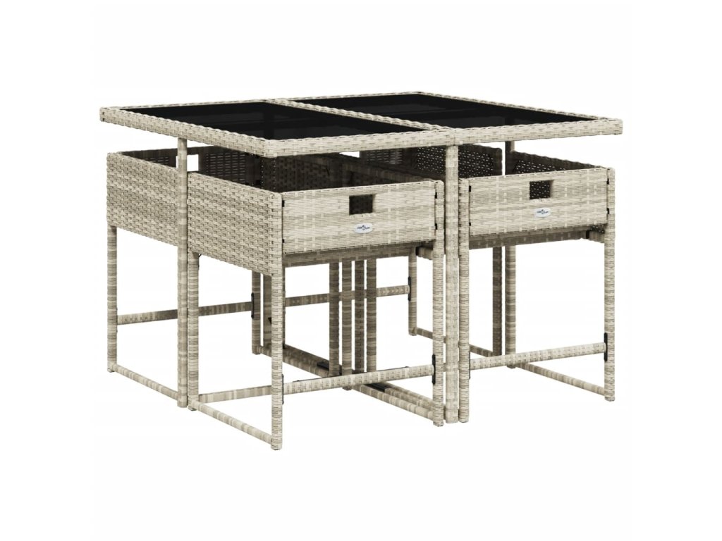 5dílný zahradní jídelní set s poduškami světle šedý polyratan 3211259