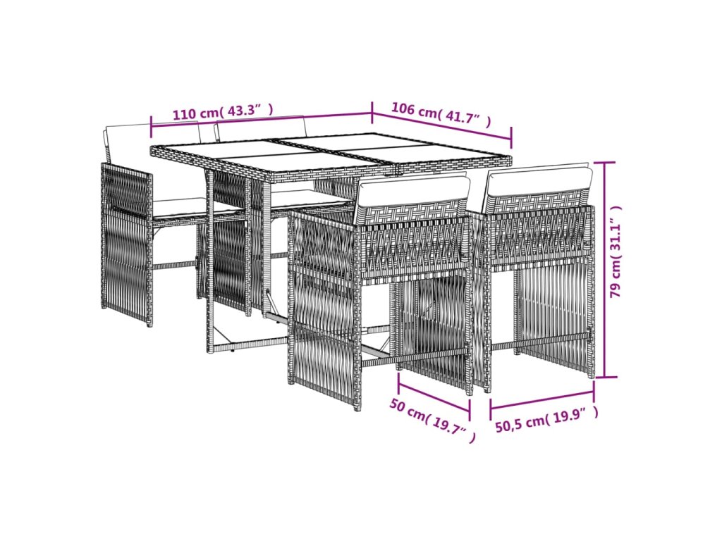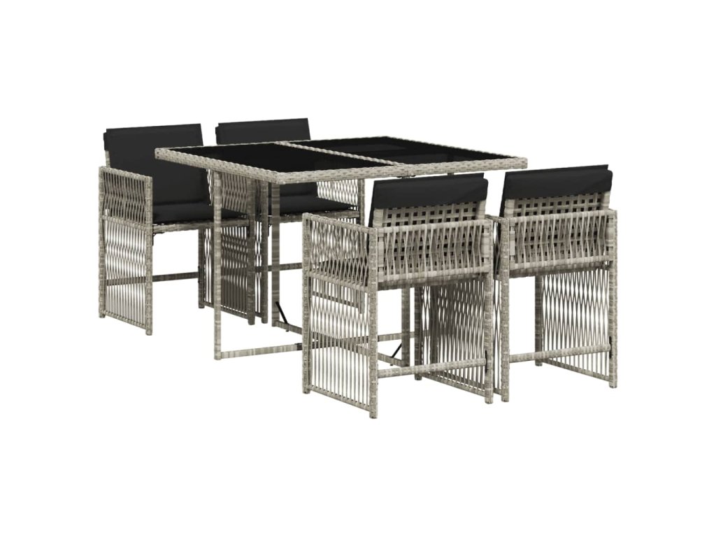 5dílný zahradní jídelní set s poduškami světle šedý polyratan 3211619