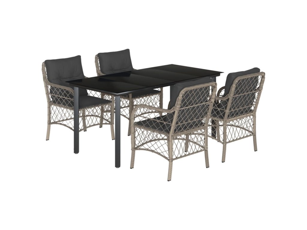 5dílný zahradní jídelní set s poduškami světle šedý polyratan 3212176