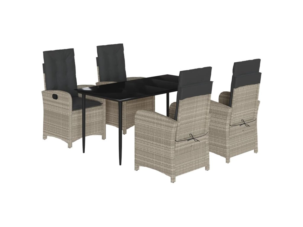 5dílný zahradní jídelní set s poduškami světle šedý polyratan 3212414
