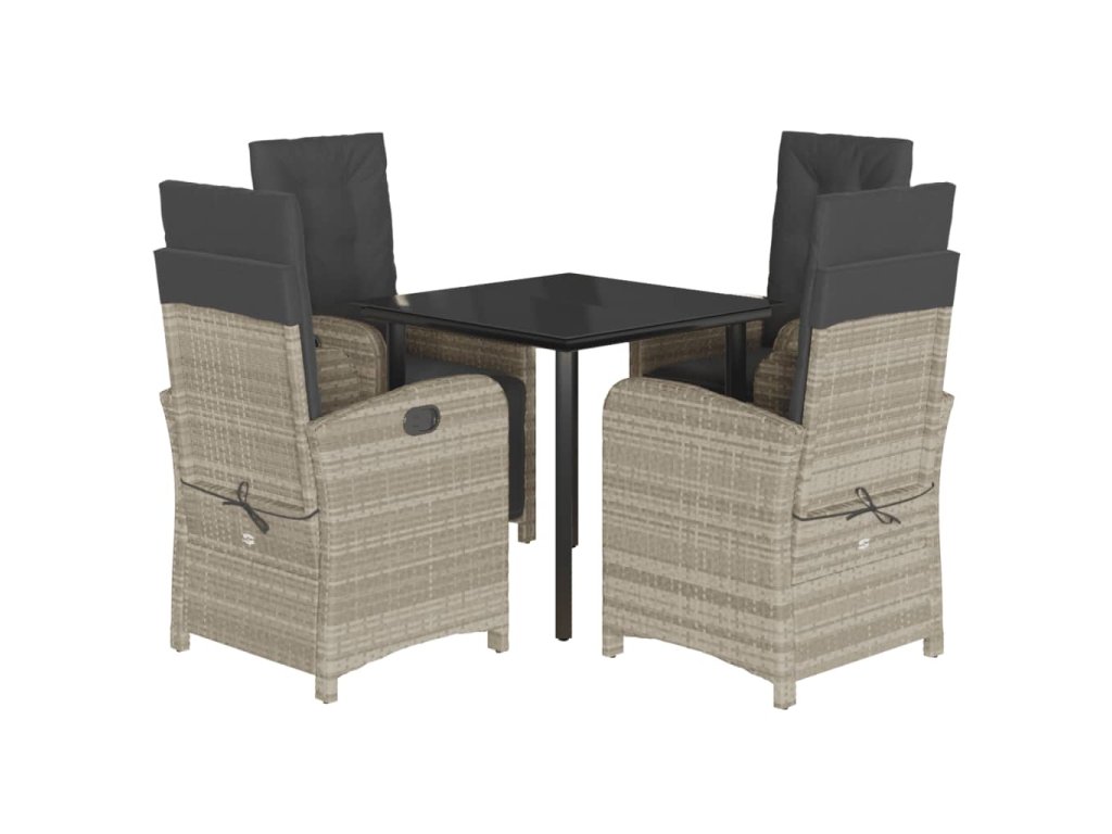 5dílný zahradní jídelní set s poduškami světle šedý polyratan 3212422