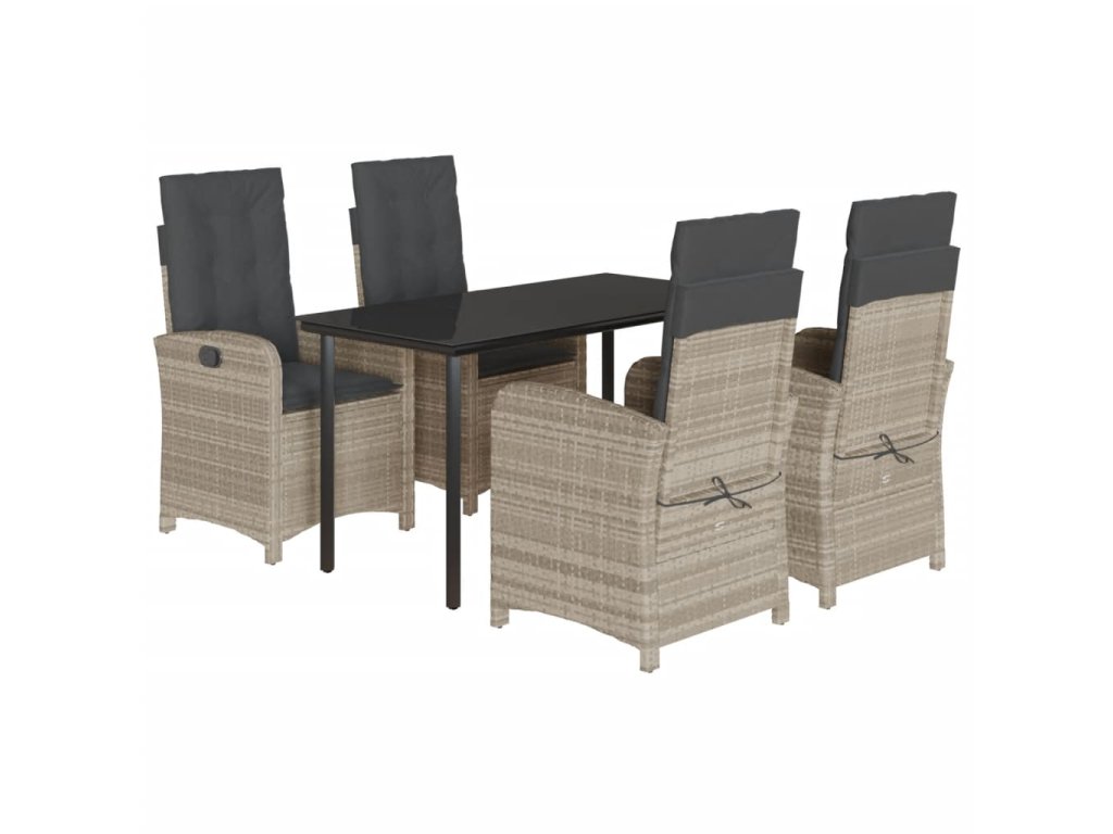 5dílný zahradní jídelní set s poduškami světle šedý polyratan 3212423