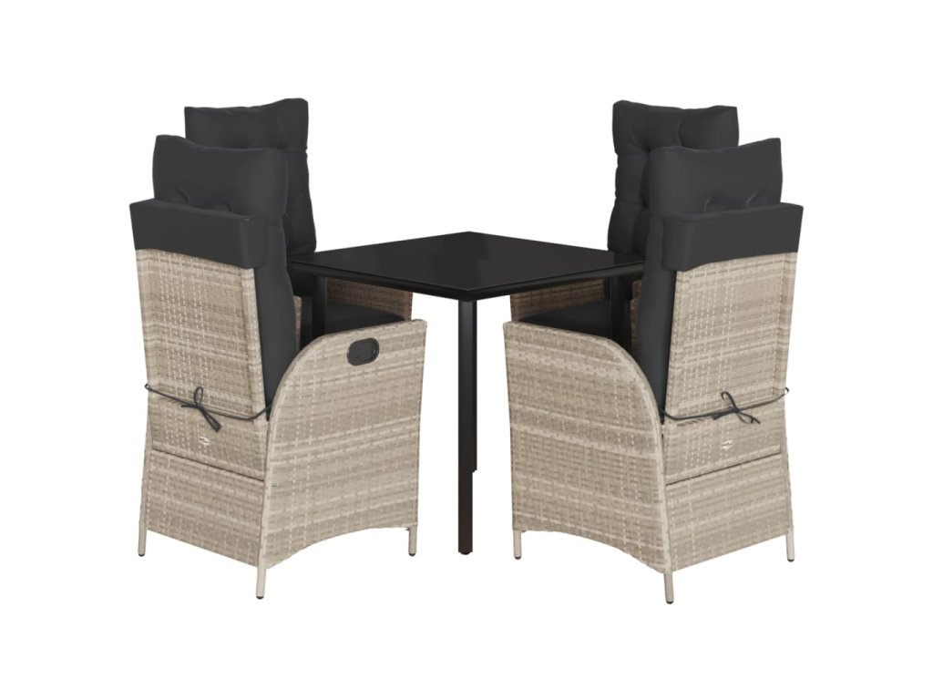 5dílný zahradní jídelní set s poduškami světle šedý polyratan 3213470