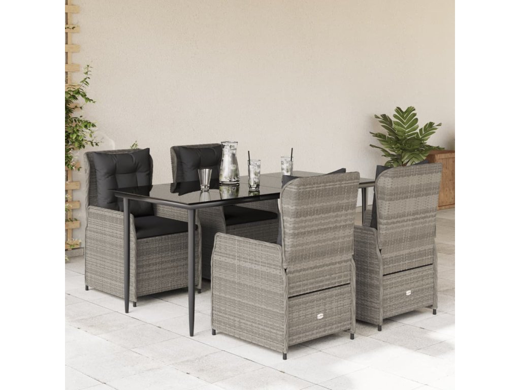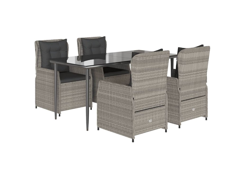 5dílný zahradní jídelní set s poduškami světle šedý polyratan 3262899