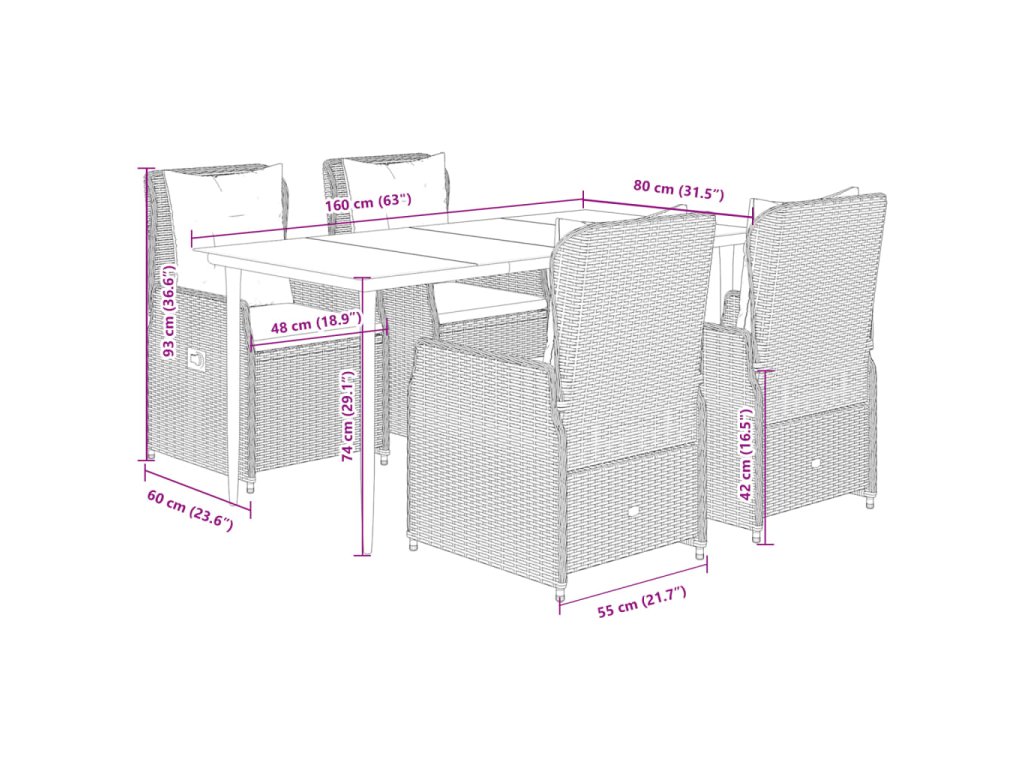 Tento zahradní jídelní set je skvělou volbou pro stolování pod širým nebem nebo jen tak pro odpočívání na zahradě, dvorku či terase.