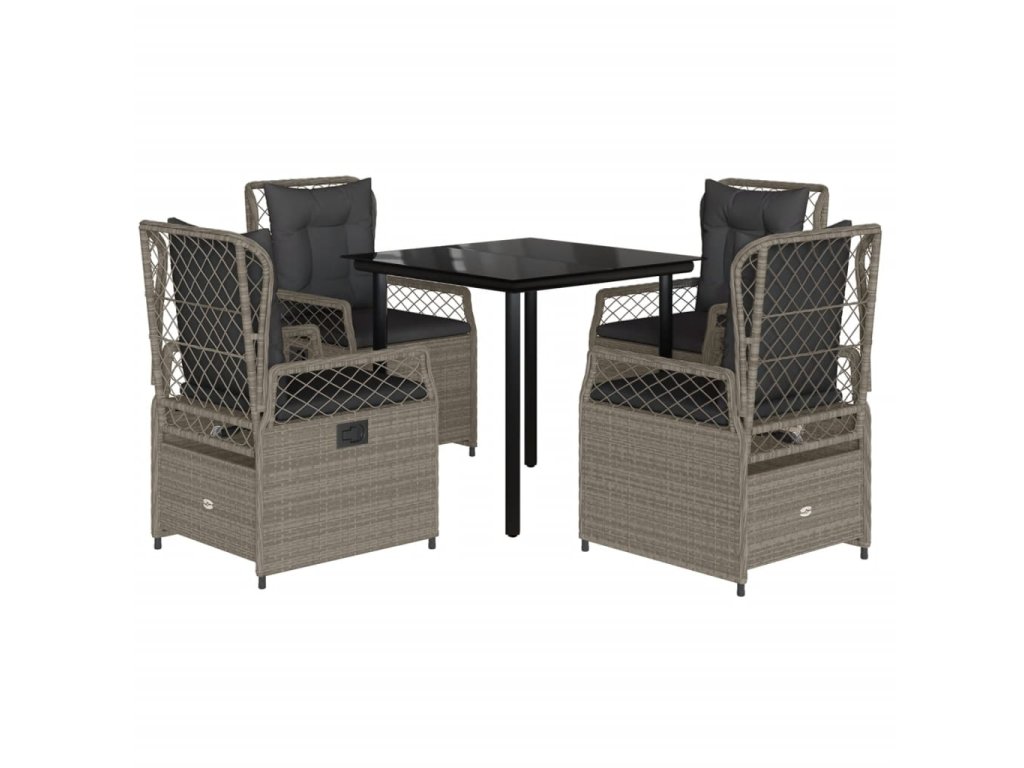 5dílný zahradní jídelní set s poduškami světle šedý polyratan 3263035