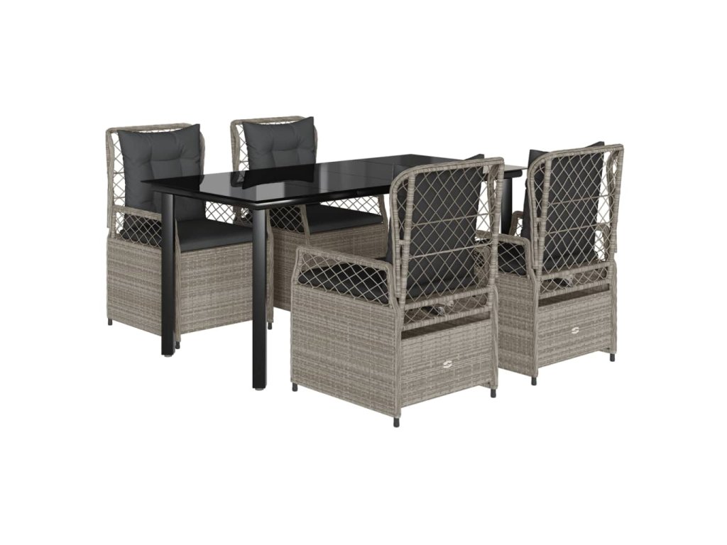 5dílný zahradní jídelní set s poduškami světle šedý polyratan 3263037