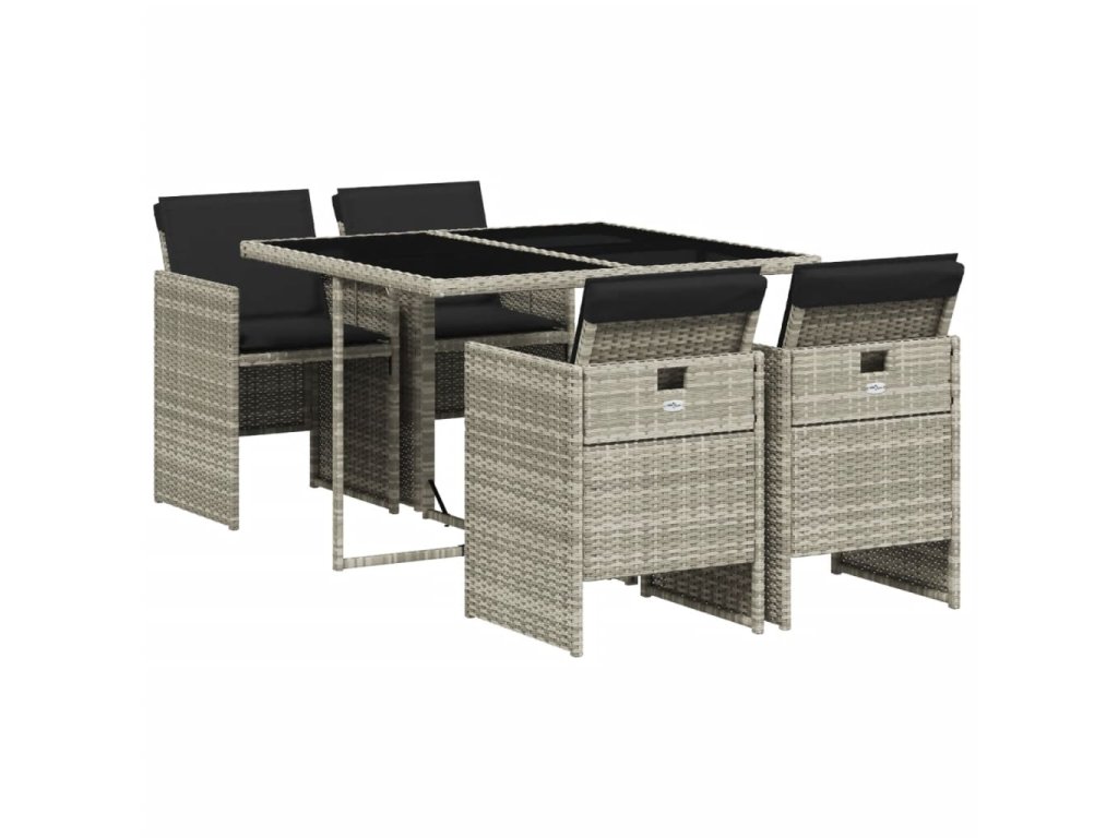 5dílný zahradní jídelní set s poduškami světle šedý polyratan 3277666
