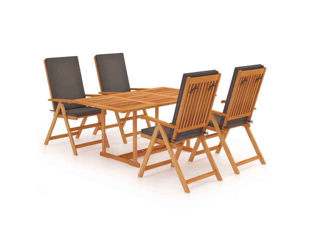 5dílný zahradní jídelní set s šedými poduškami masivní teak 3059541