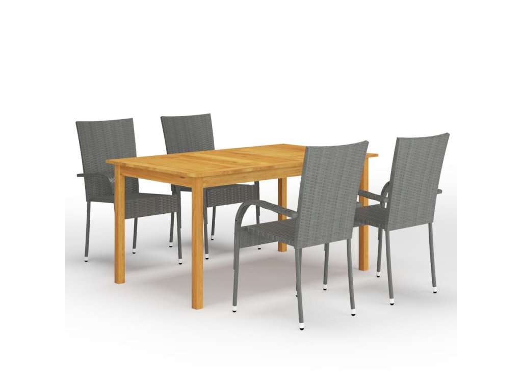Jídelní stůl je zhotovený z masivního akáciového dřeva s olejovaným povrchem, takže je stabilní, odolný a nenáročný na údržbu. Zahradní židle mají rám z práškově lakované oceli, opletený PE ratanem, který výborně vzdoruje klimatickým vlivům. Dlouho vám proto vydrží a snadno je očistíte. Jídelní židle mají také lehkou konstrukci a lze je stohovat, aby vám zbytečně nepřekážely, když je zrovna nepoužíváte.