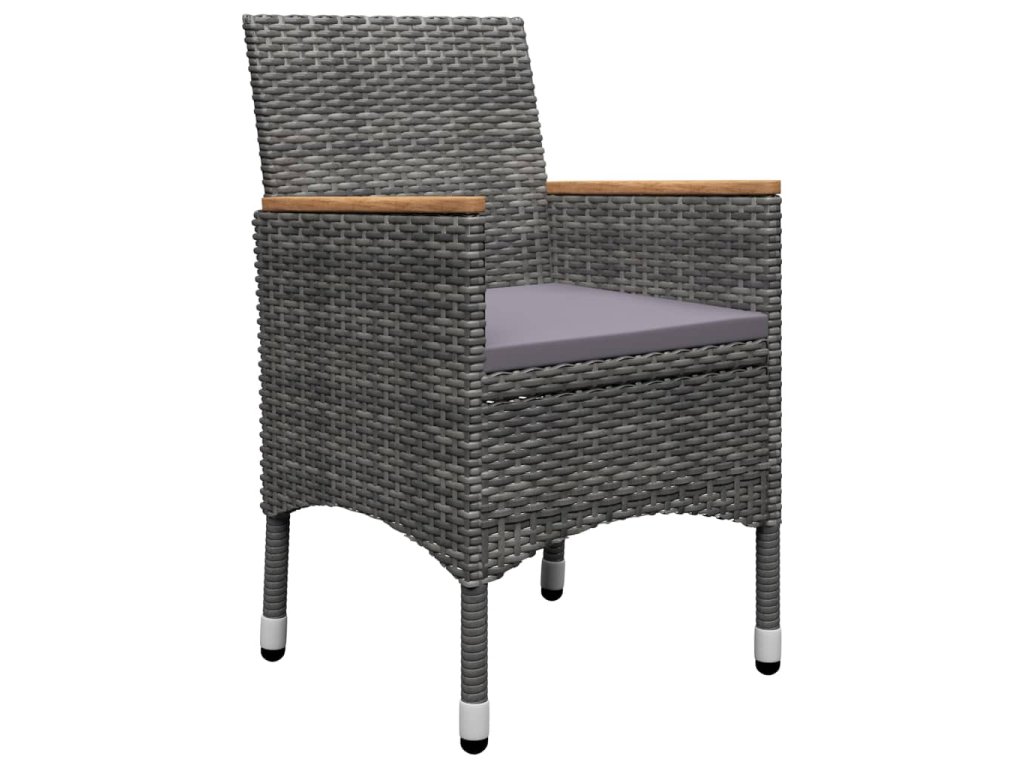 Jídelní stůl je zhotovený z masivního akáciového dřeva s olejovaným povrchem, takže je stabilní, odolný a nenáročný na údržbu. Bytelné jídelní židle a stoličky mají rám z práškově lakované oceli, opletený PE ratanem, který výborně vzdoruje klimatickým vlivům a snadno se čistí. Zahradní židle mají zaoblená opěradla a područky, což přispívá k většímu pohodlí, stejně jako jejich ergonomický tvar. Područky jsou navíc nádherně zdobené masivním akáciovým dřevem, které jim dodává rustikální šarm. Každé křeslo je opatřené odnímatelnou, hustě polstrovanou poduškou, abyste si při odpočinku mohli užívat mimořádný komfort.