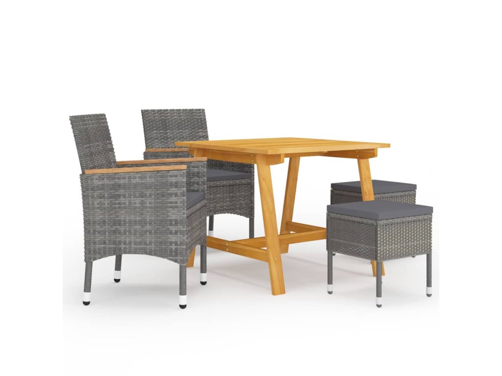 - Materiál: PE (polyetylenový) ratan, práškově lakovaná ocel, masivní akáciové dřevo s olejovaným povrchem