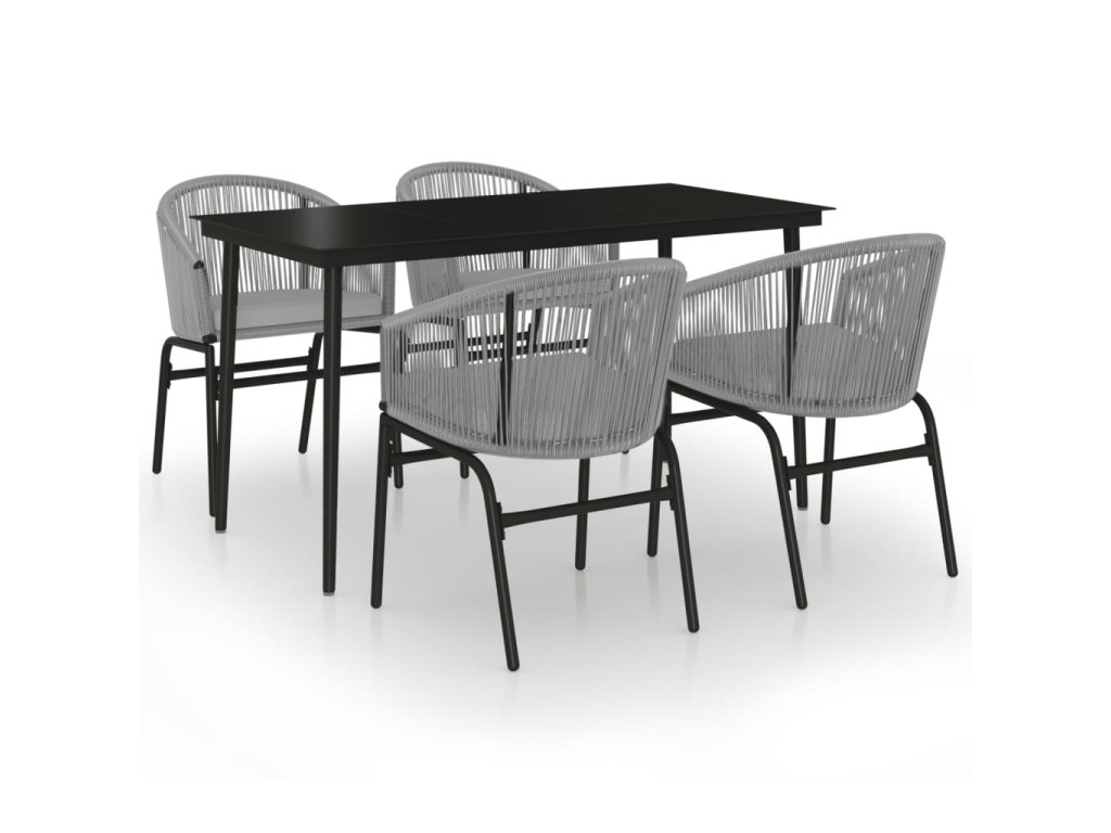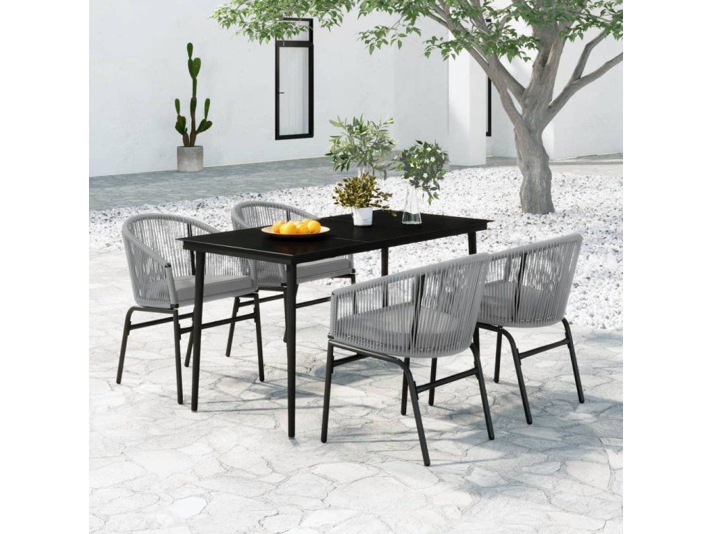Zahradní jídelní set má práškově lakovaný ocelový rám, takže je robustní a stabilní a ideální pro venkovní použití. Hladká skleněná deska stolu se snadno čistí vlhkým hadříkem a skvěle vám poslouží k podávání jídla a pití nebo k vystavení různých dekorativních předmětů. Židle jsou vyrobené z PVC ratanu, jsou proto odolné a výborně vzdorují UV záření i špatnému počasí. Každá z nich je navíc opatřená odnímatelnou hustě polstrovanou poduškou, a zpříjemní vám tak váš odpočinek.