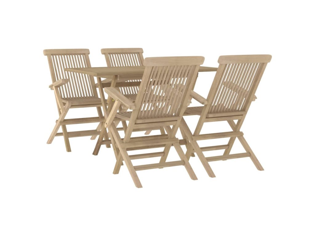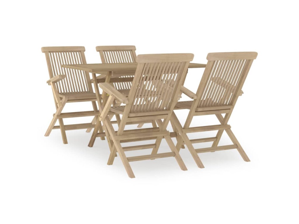 5dílný zahradní jídelní set šedý masivní teakové dřevo 3155043