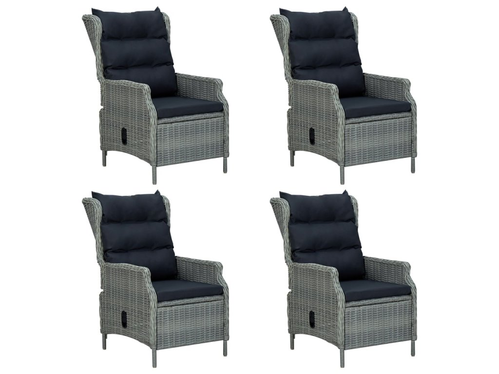 Jídelní stůl je zhotovený z masivního akáciového dřeva s olejovaným povrchem, takže je stabilní, odolný a nenáročný na údržbu. Zahradní židle mají rám z práškově lakované oceli, opletený klimaticky odolným kulatým PE ratanem, jsou tudíž odolné a snadno se čistí. Hustě polstrované podušky vám při odpočinku zaručí mimořádný komfort. Jejich potahy jsou opatřené zipem, abyste je mohli bez námahy stáhnout a oprat. Židle disponují mechanismem s plynovým pístem, umožní vám tedy také nastavit opěradlo do různých poloh. Stačí stisknout tlačítko na boku a opěradlo se sklopí do pohodlné pozice vleže. Vzhledem k lehké konstrukci lze jídelní židle jednoduše přesouvat, kam potřebujete.