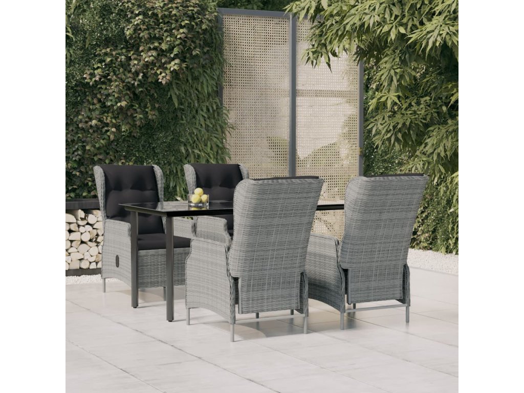5dílný zahradní jídelní set světle šedý polyratan 3156794
