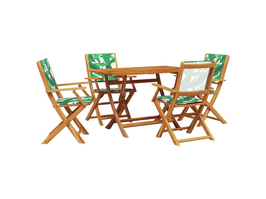 5dílný zahradní jídelní set vzor listů textil a masivní dřevo 3281704