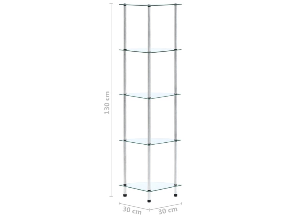 5patrová police průhledná 30 × 30 × 130 cm tvrzené sklo 249516
