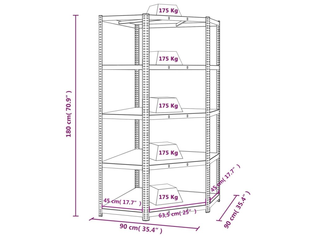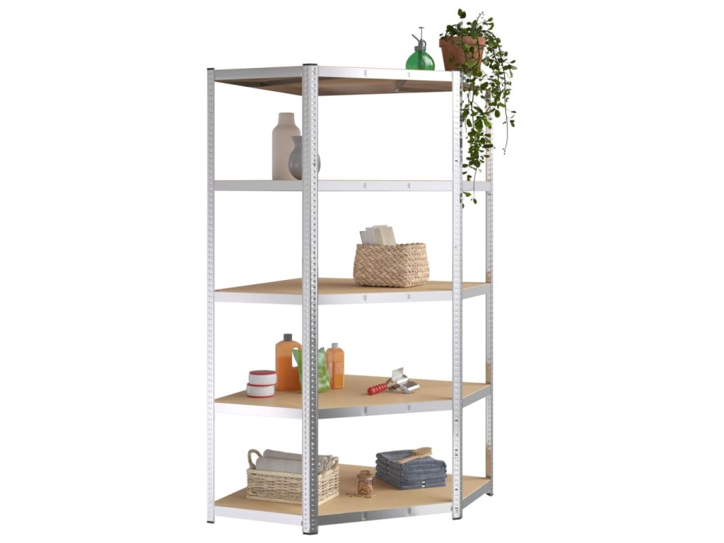 Tento robustní rohový regál je vynikající volbou pro domácí i komerční skladování a poskytuje dostatek prostoru pro úhledné uspořádání všech položek.