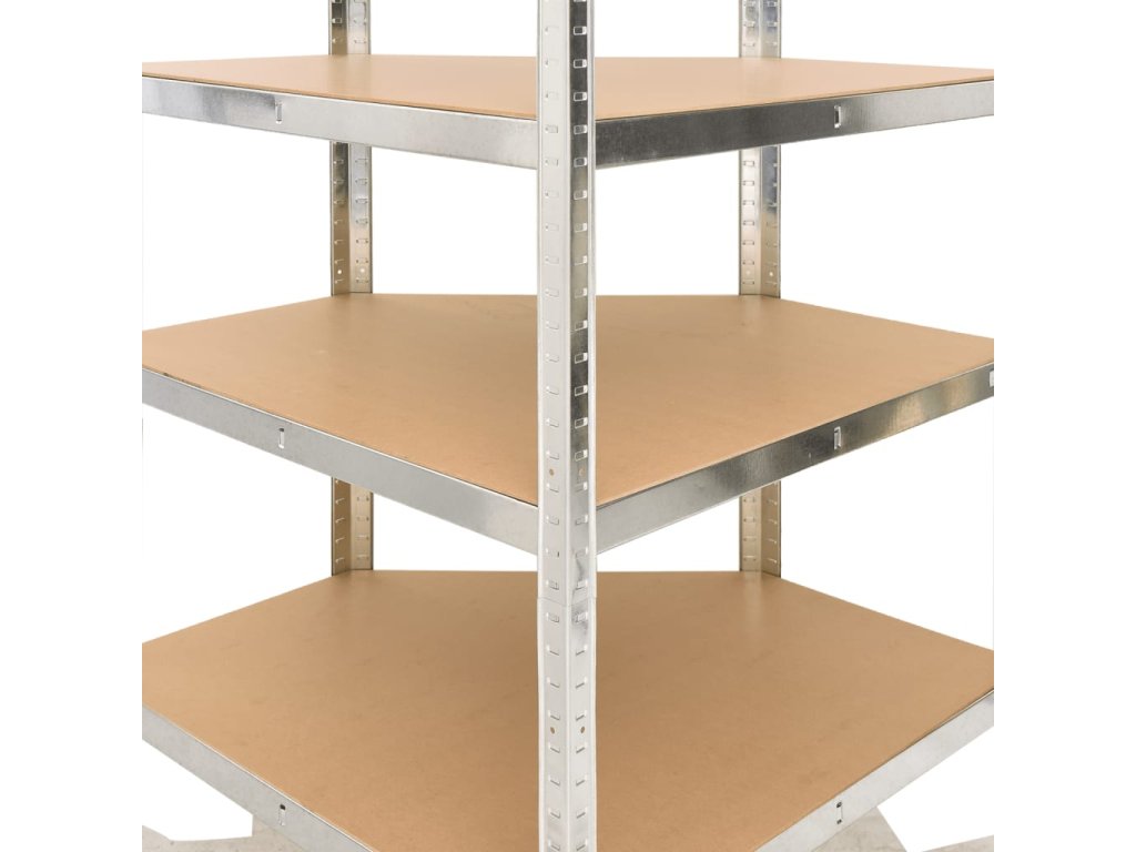 - Vysoká nosnost: Vzhledem k extra silnému materiálu, výztužným tyčím pod každou policí a konstrukci bezšroubových polic má tento velmi odolný regál výjimečně vysokou nosnost.