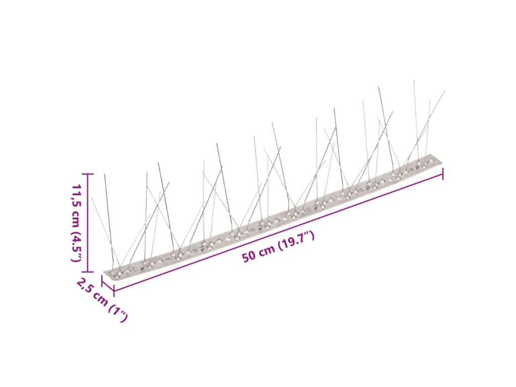 Jedná se o humánní, neškodnou, snadno použitelnou a vysoce účinnou metodu odpuzování ptáků. Hroty jsou vyrobené z vysoce kvalitní nerezové oceli, takže jsou odolné proti povětrnostním vlivům a vodě.