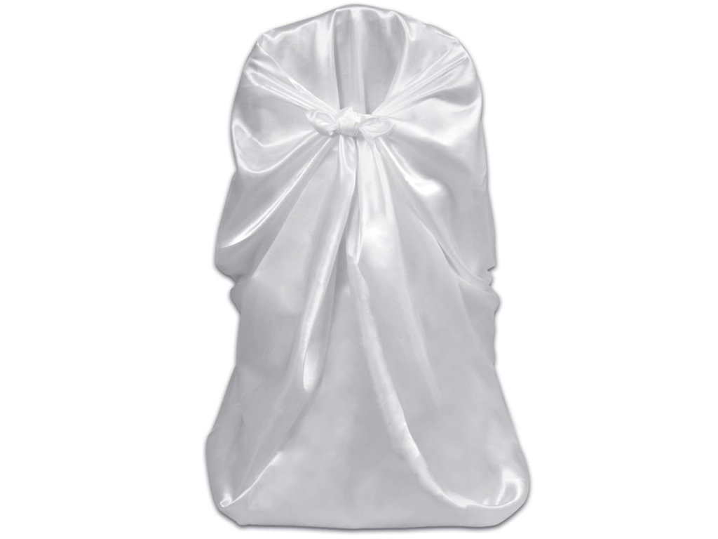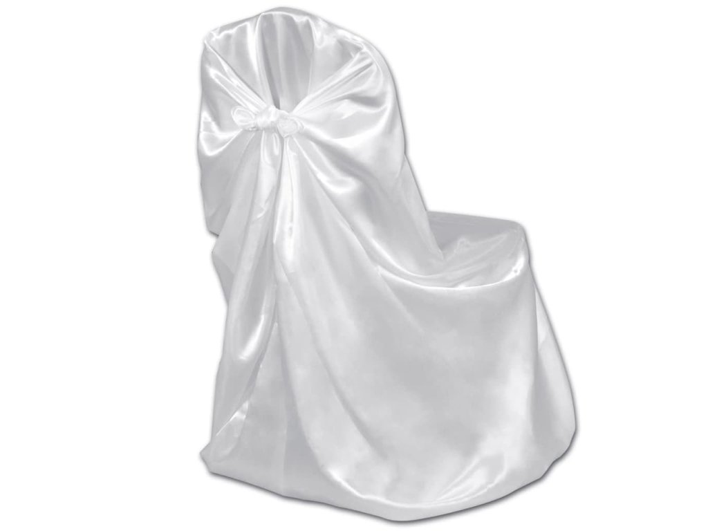 Tyto bílé potahy na židle jsou vhodné pro všechny obvyklé svatební, konferenční nebo banketové židle s kulatými nebo hranatými opěradly.