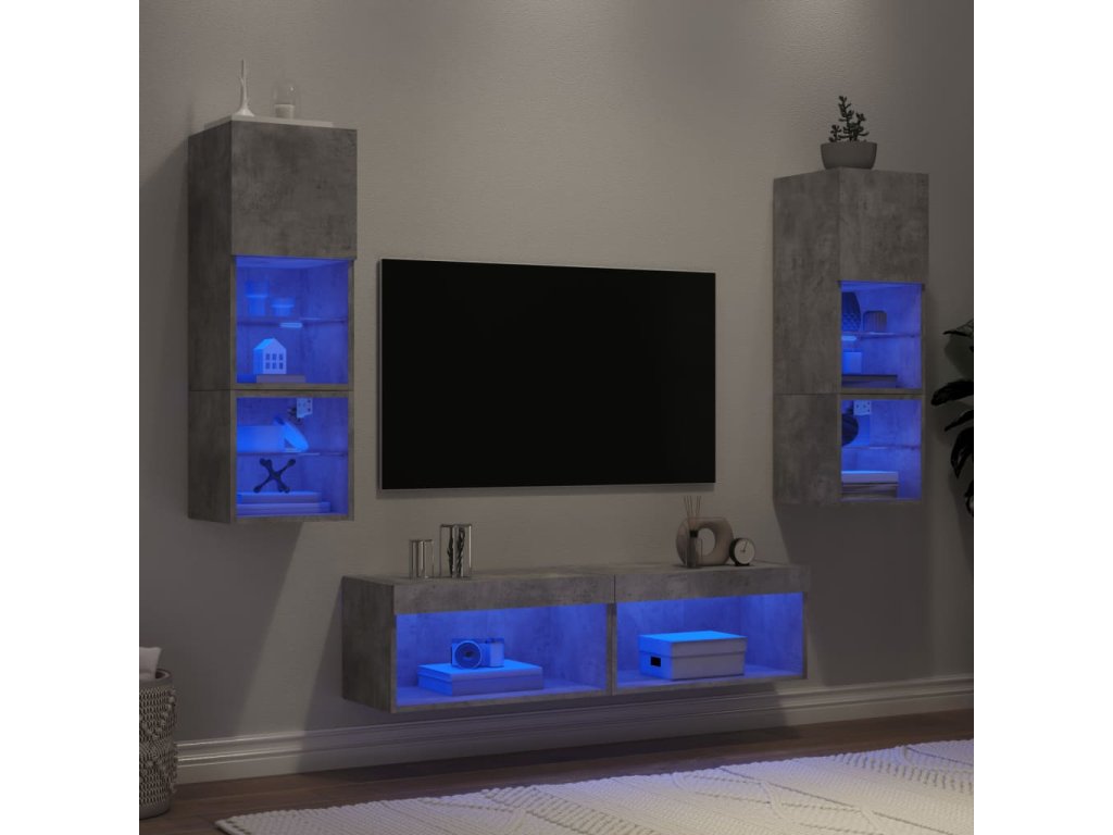 6dílná obývací stěna s LED betonově šedá kompozitní dřevo 3216618