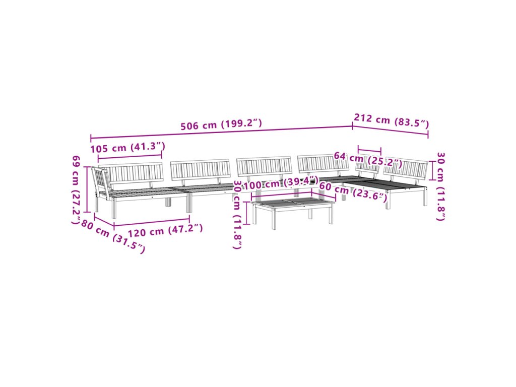 6dílná zahradní paletová sedací souprava masivní akáciové dřevo 3209313
