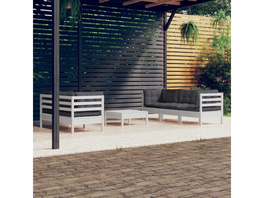 6dílná zahradní sedací souprava a antracitové podušky borovice 3096113