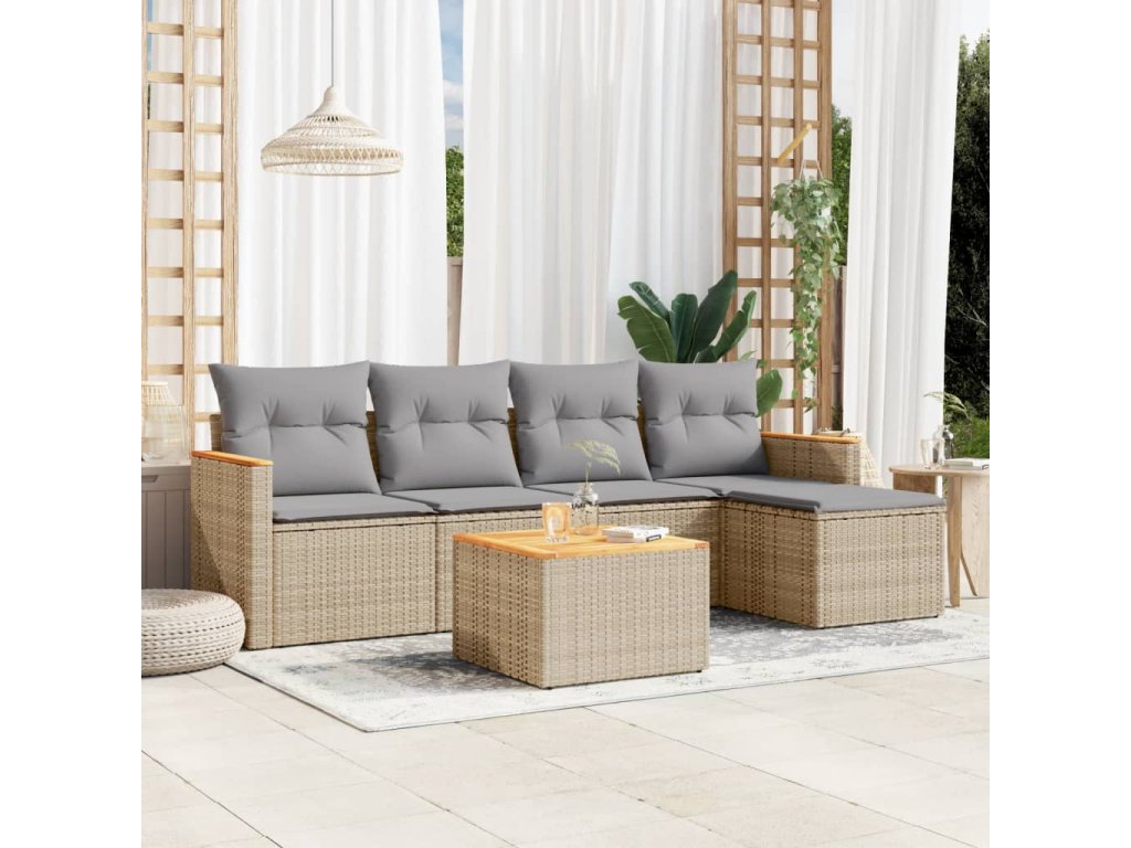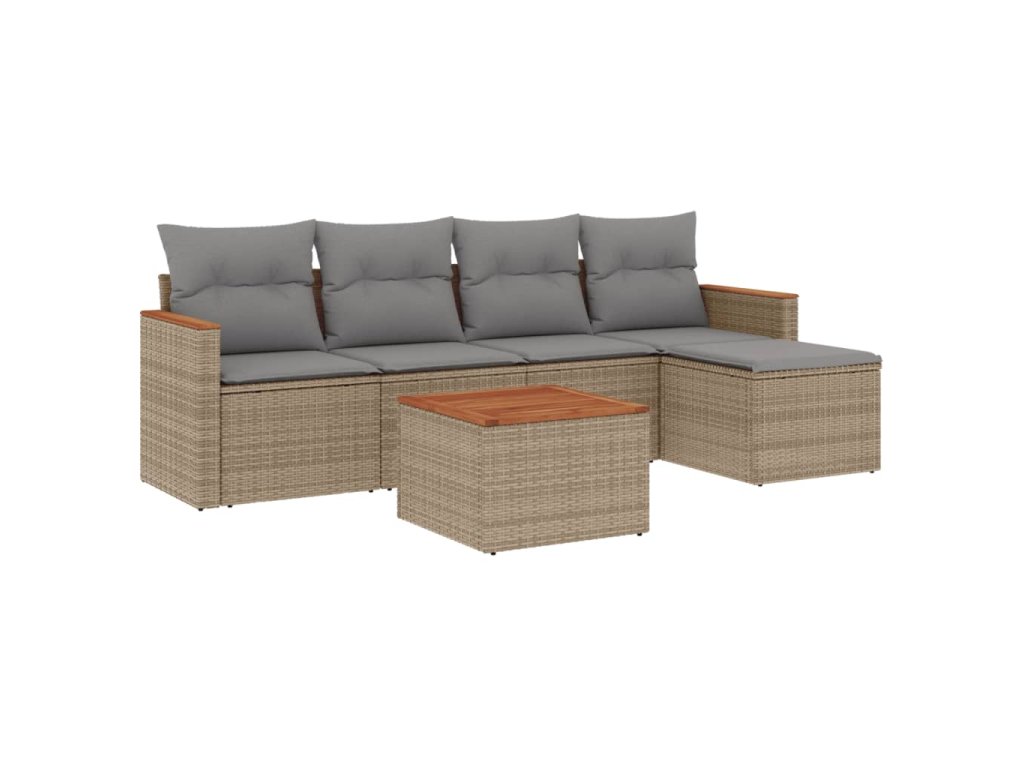 6dílná zahradní sedací souprava a podušky mix béžové polyratan 3225926
