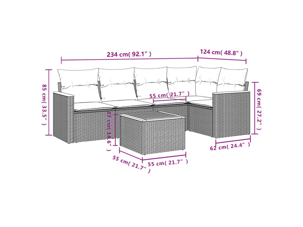 Tato zahradní sedací souprava je dokonalým doplňkem vaší zahrady, terasy nebo dvorku a poskytne vám pohodlné a příjemné místo, kde si můžete povídat s rodinou a přáteli nebo jen tak odpočívat a užívat si pobyt venku.