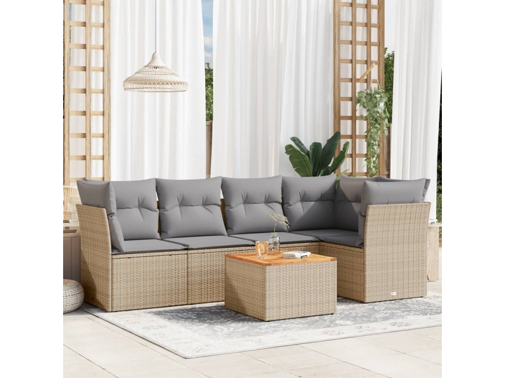 6dílná zahradní sedací souprava a podušky mix béžové polyratan 3255961