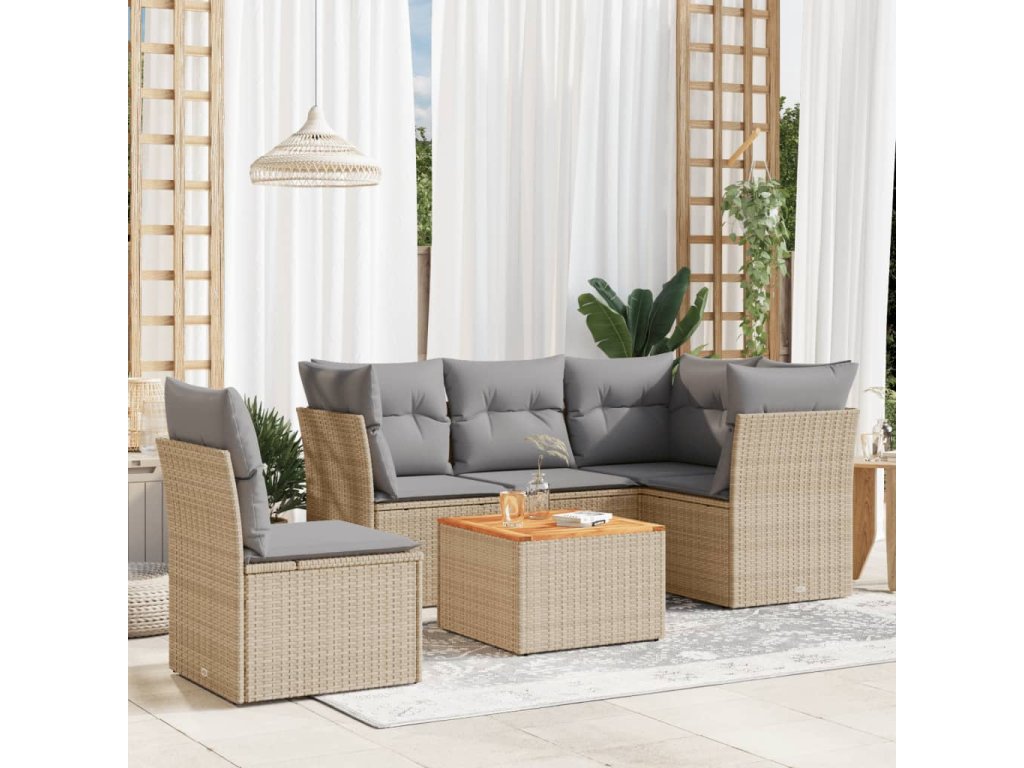 6dílná zahradní sedací souprava a podušky mix béžové polyratan 3255975