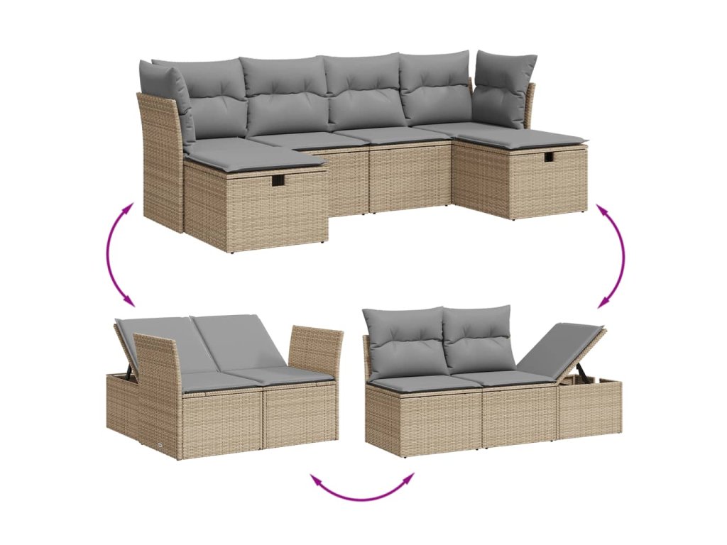 6dílná zahradní sedací souprava a podušky mix béžové polyratan 3263545
