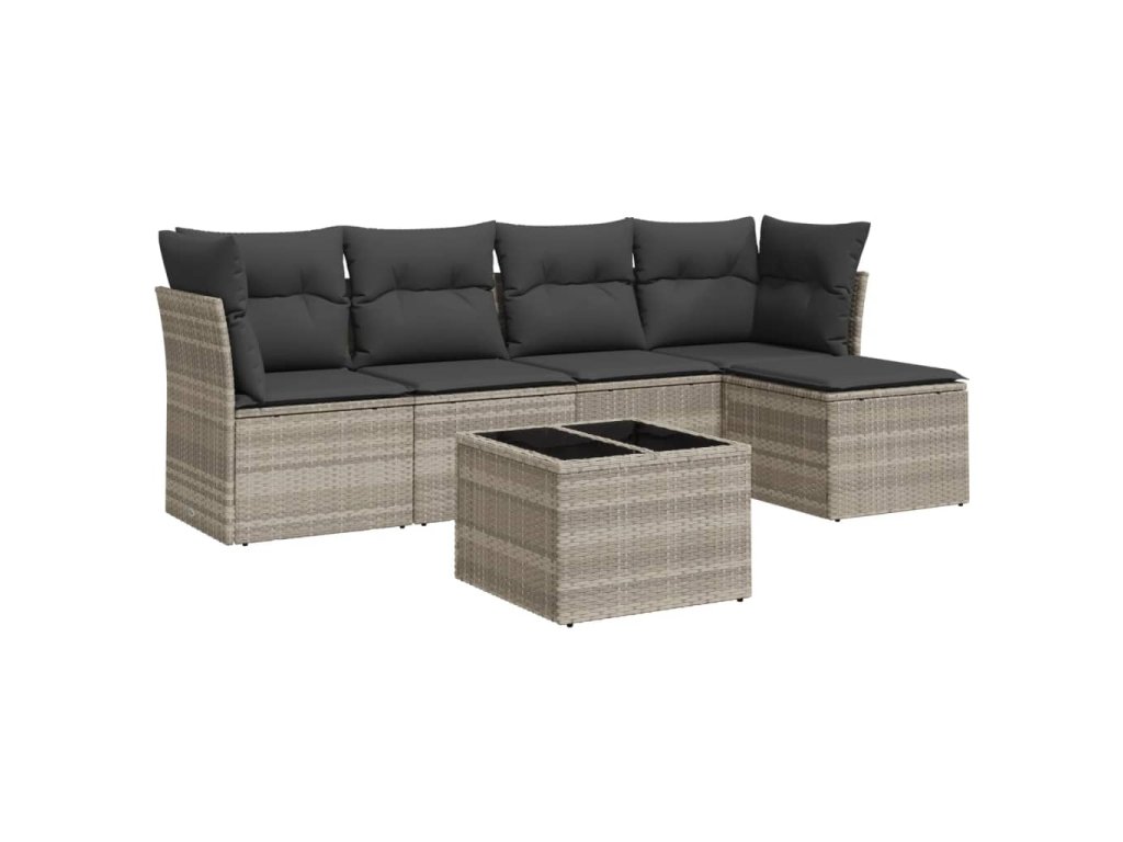 6dílná zahradní sedací souprava a podušky světle šedá polyratan 3217572